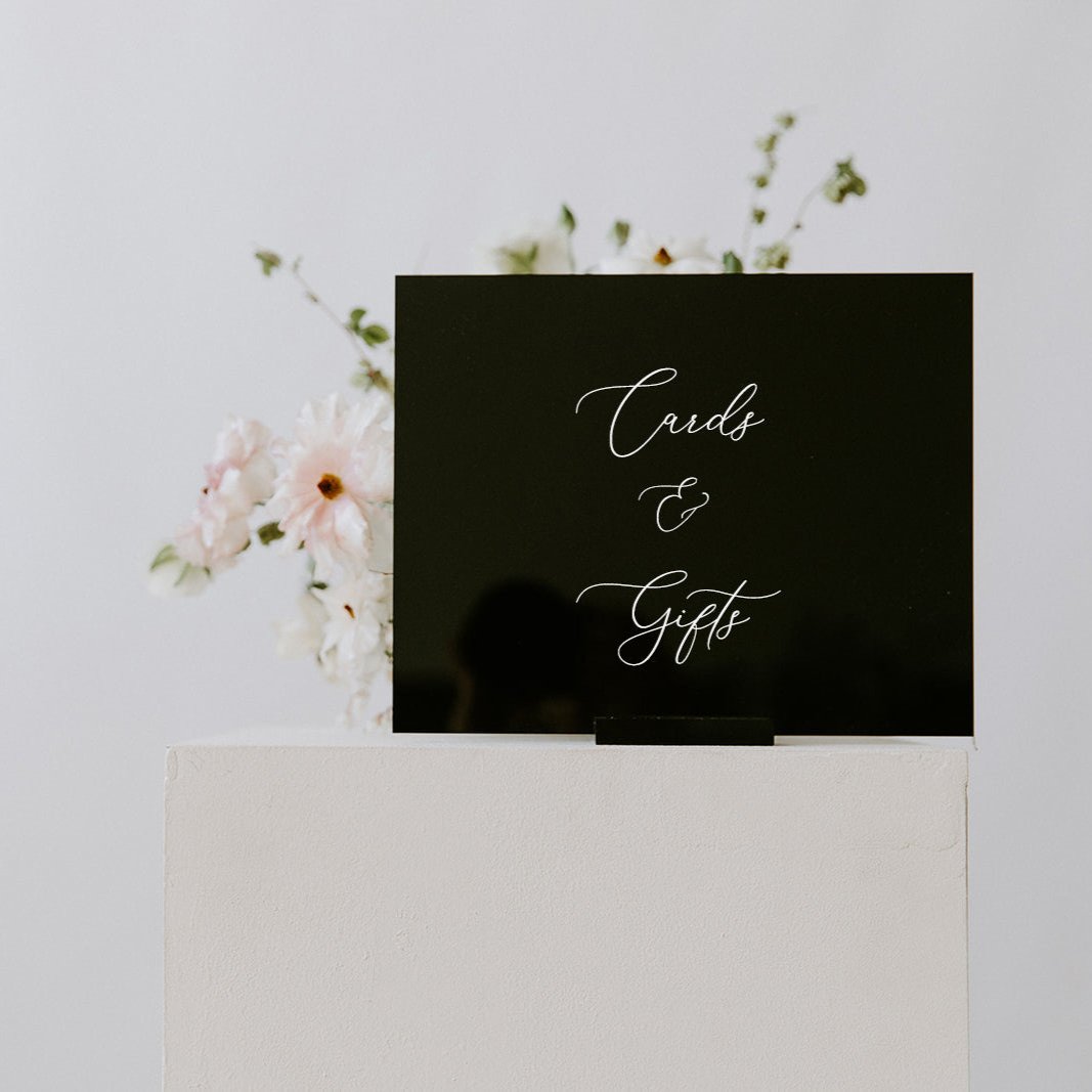 Crafted with great attention to detail and made from premium quality materials, our acrylic cards and gifts sign boasts a timeless design that effortlessly complements any event's theme. It's lightweight construction allows for effortless installation and portability, making it easy to move and display throughout your venue.