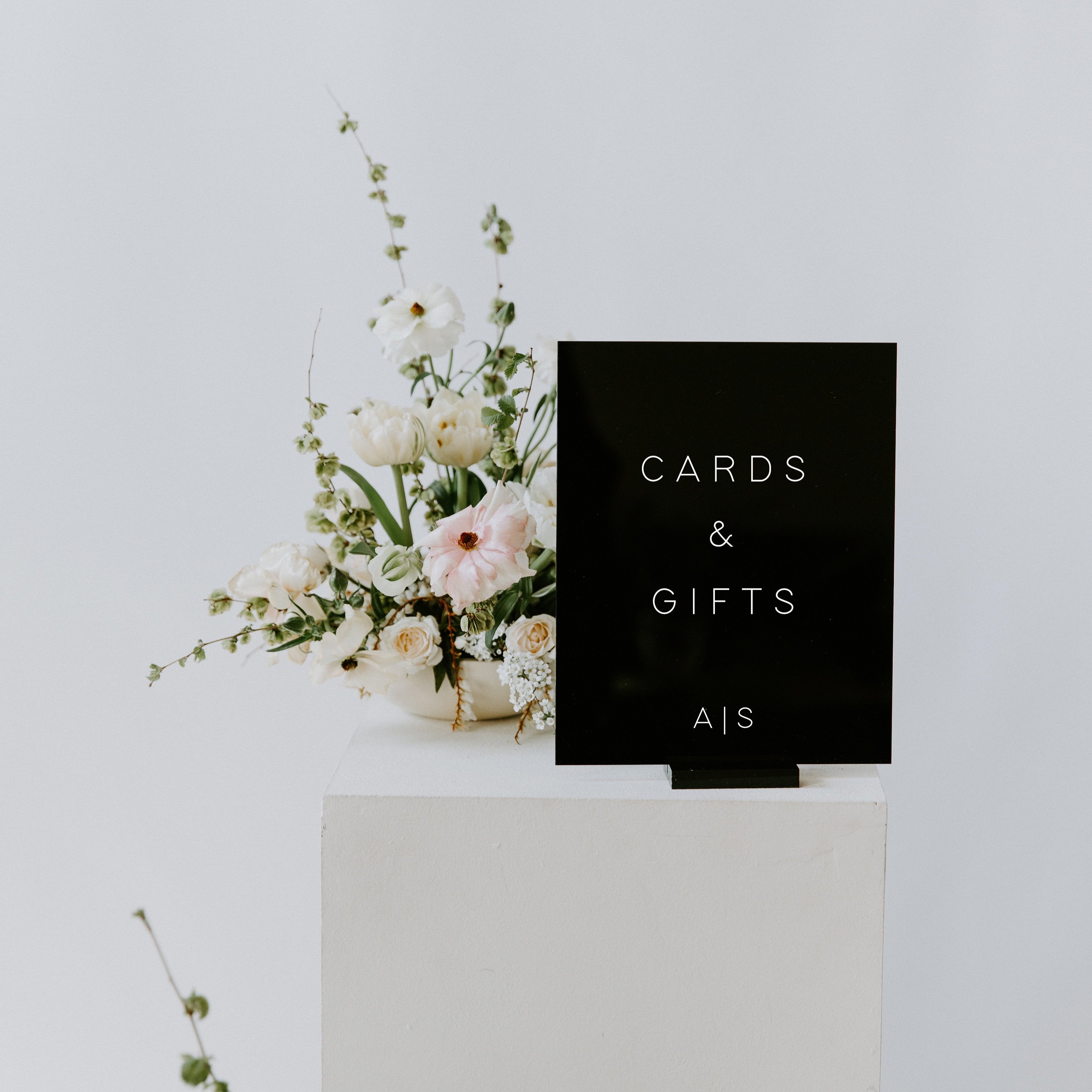 Crafted with great attention to detail and made from premium quality materials, our acrylic cards and gifts sign boasts a timeless design that effortlessly complements any event's theme. It's lightweight construction allows for effortless installation and portability, making it easy to move and display throughout your venue.