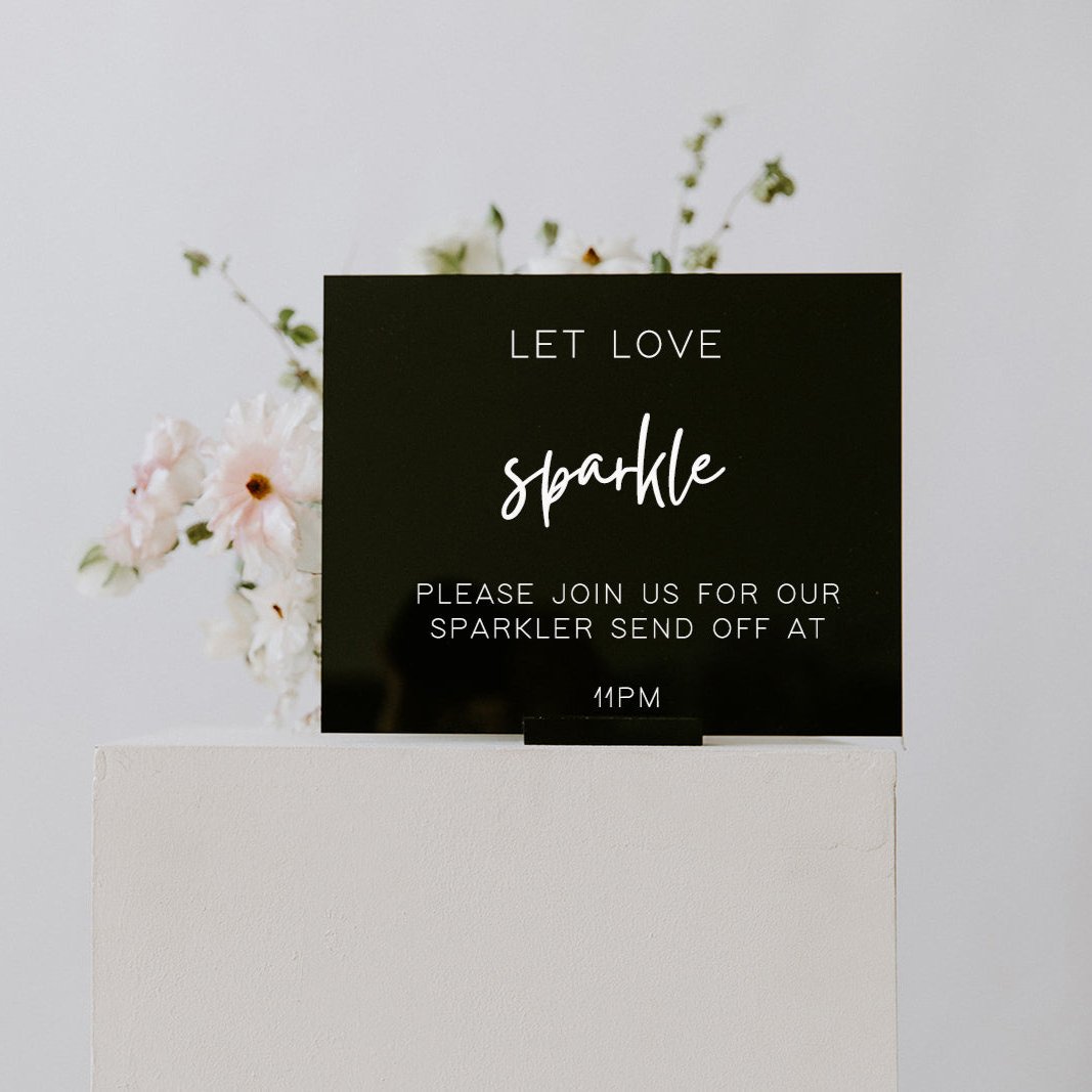 Crafted with great attention to detail and made from premium quality materials, our acrylic sparkler send off sign boasts a timeless design that effortlessly complements any event's theme. It's lightweight construction allows for effortless installation and portability, making it easy to move and display throughout your venue.