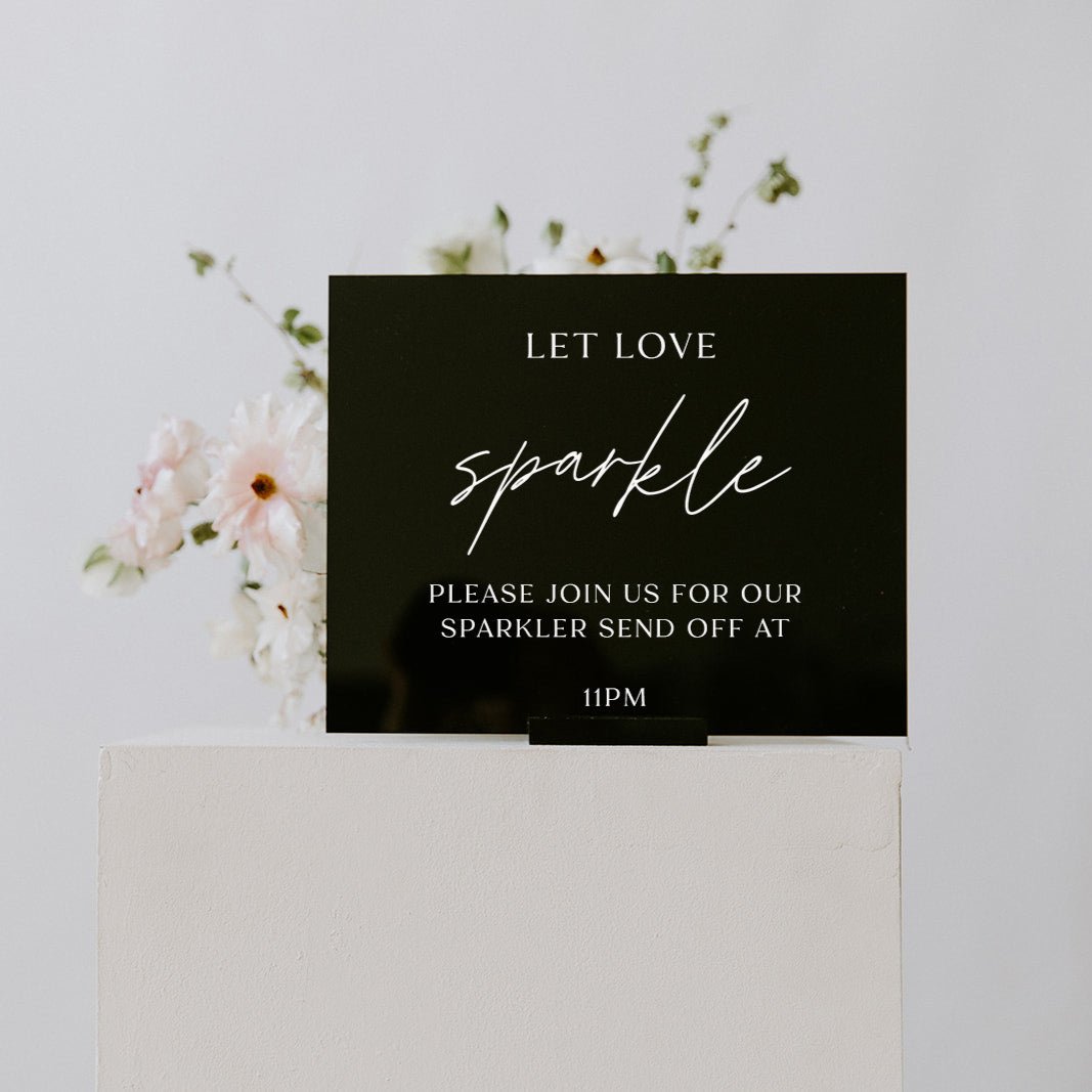 Crafted with great attention to detail and made from premium quality materials, our acrylic sparkler send off sign boasts a timeless design that effortlessly complements any event's theme. It's lightweight construction allows for effortless installation and portability, making it easy to move and display throughout your venue.