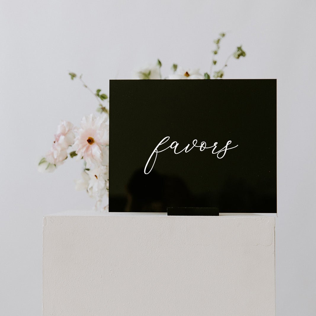 Crafted with great attention to detail and made from premium quality materials, our acrylic favors sign boasts a timeless design that effortlessly complements any event's theme. It's lightweight construction allows for effortless installation and portability, making it easy to move and display throughout your venue.