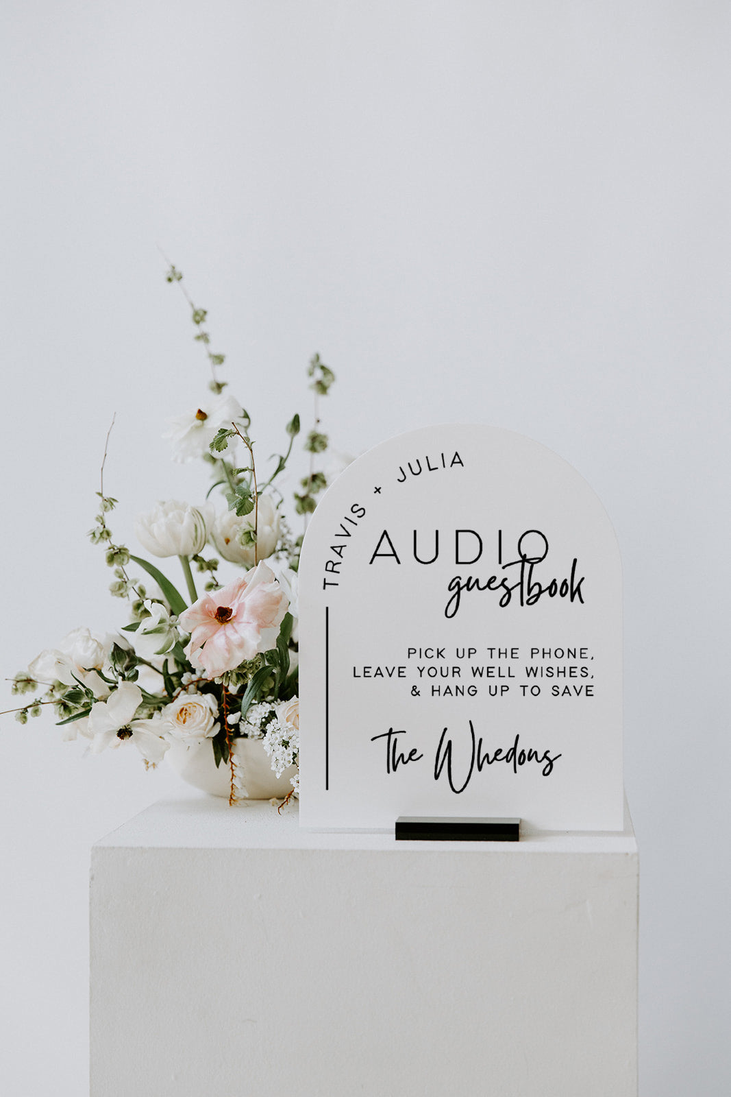 Crafted with great attention to detail and made from premium quality materials, our acrylic audio guestbook sign boasts a timeless design that effortlessly complements any event's theme. It's lightweight construction allows for effortless installation and portability, making it easy to move and display throughout your venue.